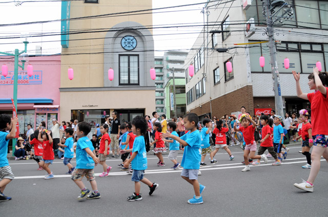 今年は、企業・町内会をはじめ、市内の幼稚園や小中高校から約1,600人を超える子ども達が参加し、89梯団約7,000人が小樽の町を練り歩いた。