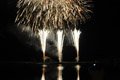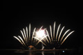 漁港内の水面上で打ち上げられる高島龍神伝説水中花火は、爆発音と共に水面にぱあっと扇型の火花が咲き、同時にその姿が水面に反射。幻想的な光景となり、観客からは大歓声と拍手が沸き起った。