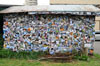 線路脇の古い木造の車庫の壁一面に、出展者が、1年間の「小樽」をテーマに撮影した写真が隙間なく貼られ、来場者の注目を集めている。水天宮の狛犬や雪あかりの路の雪だるま、何気ない日常の1コマ・古びた建物・港の風景など、素顔の小樽が切り取られている。