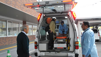 2階の手術室は、7つの部屋が並び、モニターで管理している様子を説明。7階にあるヘリポートは、防災ヘリやドクターヘリが着陸可能で、昨年12月の開院後、20回の利用があった。夜はライトを点灯し、冬期間はヒーティングで雪を溶かし、24時間365日対応している。