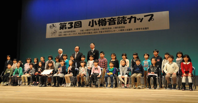 小樽市教育委員会が主催する「第3回小樽音読カップ」が、11月8日(日)8:40から、小樽市民会館(花園5)大ホールで開かれ、保護者や祖父母、学校関係者らが詰めかけ、子ども達の音読に聞き入った。
