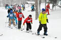 先に到着した別の班の児童らは、講師の手ほどきを受けながら、慎重にコースを滑ったり、列を作り元気に滑走を楽しむ班もあった。他のスキー学校の参加者も練習を開始し、真っ白な雪山のところどころに、練習に励む子ども達の姿で賑わった。
