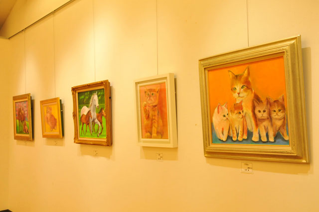 この他、大畠譲さんのガラス絵や、大西薫さんの猫の優しい表情が印象的な作品など、レベルの高い作品がずらりと展示され、来場者を楽しませている。