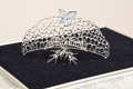 長内代志子さん(北一硝子)は、小樽の荒海に降る雪をイメージした「雪の器」と、氷と雪の結晶をモチーフにした繊細な硝子のティアラを出展。女性ならではの作品に、来場者は足を止めて見入っていた。