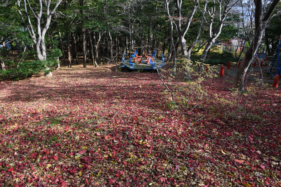 ブランコなど遊具のある場所からは、まだまだ紅葉が楽しめる。