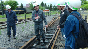 linewalking2.jpg また、進路を転換するポイントの仕組みも解説し、通常は自動で動くが、機関士による手動での操作も見学した。