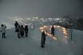 3連休最後の2月11日(月)は、まずまずの夜景日和となり、夜景と雪あかりの共演を見ようと、大勢の人が訪れ、バスもロープウエイも臨時便を出して対応した。18:00過ぎ、山頂駅では、ロープウエイを待つ人の列が外にまで続いていた。
