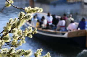 穏かな水面を運河クルーズが定期的に走行し、乗船客も暖かい日差しを浴びながら、運河から見える景色を楽しんでいた。