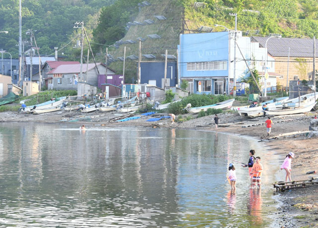 豊井海岸や祝津海岸では、砂浜で遊ぶ人や海に入る人の姿も見られ、夏を思わせる暑さに、市民も驚いている。