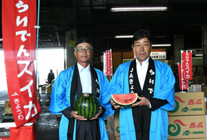 共和町のすいか農家59戸(83ヘクタール)のうち3戸が、1月から越冬ハウスに種を蒔き、10日(月)に初収穫。翌日、札幌と小樽で初せりが行われた。 今年は、天候にも恵まれ、大玉で甘いすいかに成長。昨年よりも4日早い収穫となった。