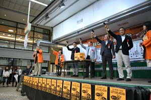 参加者は、18:00からの受付で引換券とラリーカードを交換し、それぞれに記載された店がどこなのか検討していた。スタート前の会場では、小樽太鼓衆鼓響の演奏を楽しみながら、1万円が3本当る抽選会が行われた。