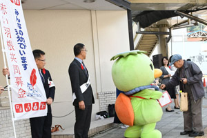 赤十字奉仕団による街頭募金も、早朝から市内全域で行われ、毎年参加しているおたる運がっぱもかけつけ、募金箱を提げ会場を和ませた。
