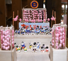 小樽の冬を代表するイベント・小樽雪あかりに路のワックスボールを、ペットボトルのキャップを使って表現したり、おたる潮まつりのメーンステージを囲んで楽しく踊る潮ねりこみの様子や、家にあった不用品を使って、貝の家やタコの公園・ヒトデのデパートなどを制作した「うみのまち」など、ユニークなオルゴールが来場者の目を惹いていた。