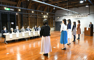 容姿・言動・知識に各5点、総評に5点の20点満点で審査。審査員からの質問と「長所を活かして小樽のまちをどうPRするか」を、自己紹介を含めそれぞれの思いとともに的確に答えた。