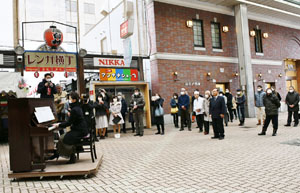 小樽サンモール一番街商店街振興組合(三ツ野篤久理事長)の小樽ストリートピアノ実行委員会(荒澤之博委員長)は、東日本大震災から9年目の3月11日(水)、追悼セレモニー「第9回ストリートピアノでつなぐ祈りのハーモニー」を開催。新型コロナウイルス感染拡大防止に配慮して縮小したが、約80人の市民が集まった。