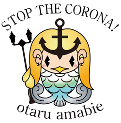 小樽版アマビエは、港小樽をイメージして額に錨(イカリ)を付け、運河のガス灯を銛(モリ)に見立て、耳と足は潮まつりのうず潮マークをあしらい、小樽らしさを強調。