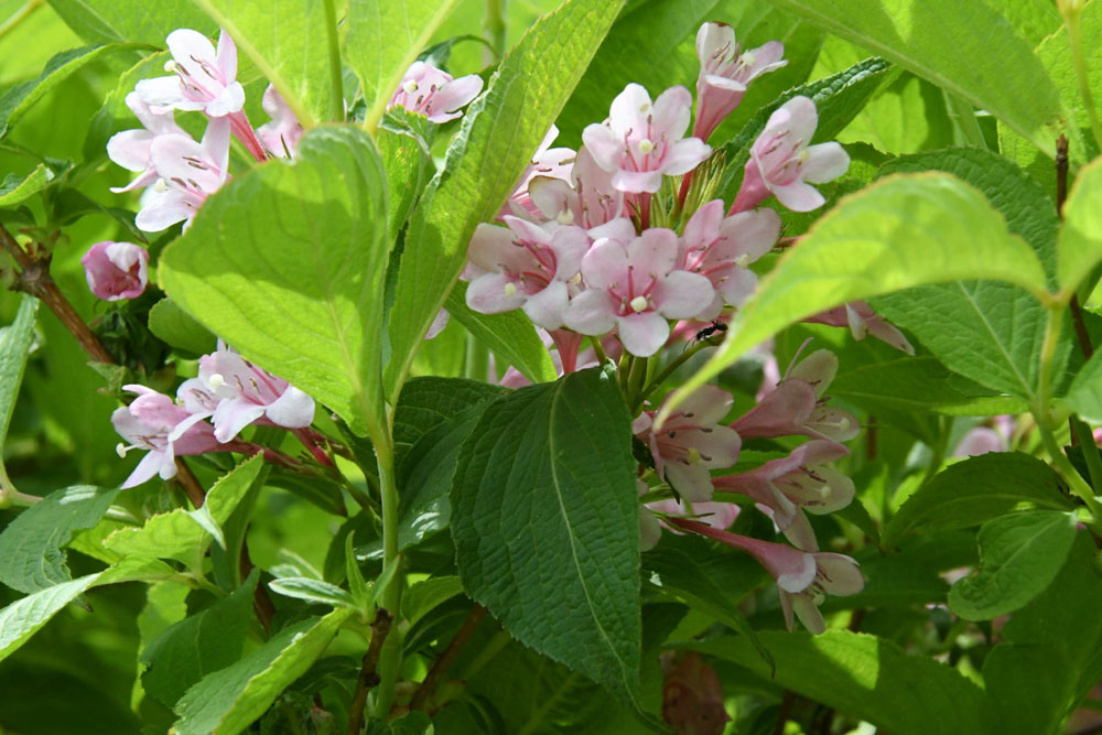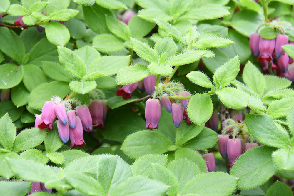 ハウチハカエデは、葉が生い茂り、芝生の上に丁度良い木陰を作っていた。濃いピンク色の花が可愛いサンザシ、別名フウリンツツジと言われるサラサドウダン、蕾んだベル型の花のコヨウラクツツジなど、ツツジ科の花が意外にも多い。