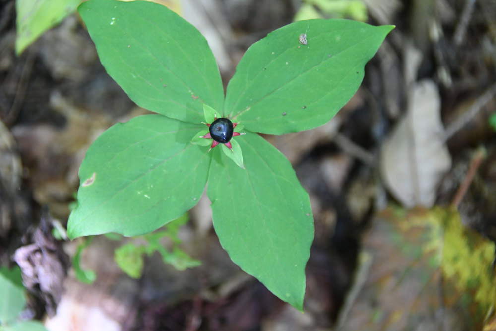 白ヤマギク・ミヤマアキノキリンソウ・ツルリンドウ・可憐なピンクの花のヤマハギ・羽子板の羽を思わせるツクバネソウ・黒い実をつけるオオツリバナ、ギンリョウソウモドキは、葉緑素を持たずに菌から栄養を受け取って生きる不思議な植物で、ここでは群生も見られるという。