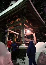 石山町の急な坂の途中にある浄応寺(石山5・島隆住職)では、コロナ禍でも0:00に合わせて除夜の鐘を決行。地域住民が鐘をつこうと徐々に集まった。