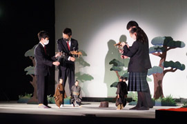 旅人を演じた3年生の吉田圭吾さんは、「人形を動かしながら台詞を言うのは、自分でやってみたらすごく難しくて、劇団の方は本当にすごいと思った。手板を支える指もすごく疲れた」と感想を述べた。