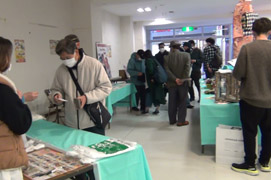 11月12日(金)〜14日(日)の3日間限定で、都通り商店街(鈴木創理事長)のビリヤードアラカワ(稲穂2)1階に、堺町通り商店街の15店舗が集結し「まちの駅」を開店。初日は10:00の開店を前に50名ほどが列を作り、にぎやかなスタートを切った。