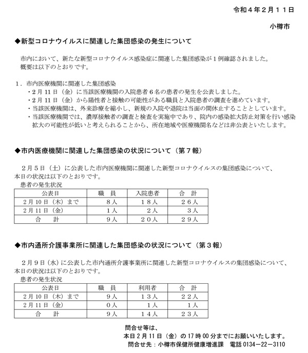 ◎2月11日小樽市立病院における新型コロナウイルス感染症患者の発生について(外部)