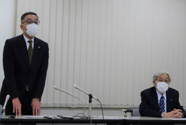 今年8月の任期満了に伴い、2月21日(月)に小樽経済センター(稲穂2)5階会議室で、迫俊哉小樽市長は、2期目の市長選挙立候補を表明する記者会見を開いた。前回同様、工藤左千夫後援会会長と宮田康路幹事長代行が同席。
