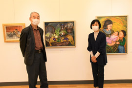 小原未知世さんは、毎年桜の絵が印象的で、様々な表情を捉えた「老木に花が咲く」「闇夜に浮かぶ桜」「妖艶な桜」の3点を含む9点を出展。外出自粛の中で、花や人形・野菜などの静物画も多く、どれも丁寧に描かれている。
