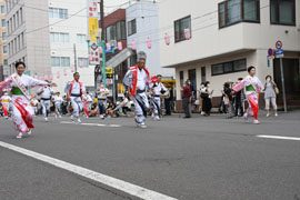 昨夜から降り続いた雨も開催時間までには止み、多くの見物客が沿道を埋め尽くし、小学生以下663名を含む約3,000名が、新型コロナウイルス感染防止対策を徹底し55梯団に分かれて踊り歩いた。