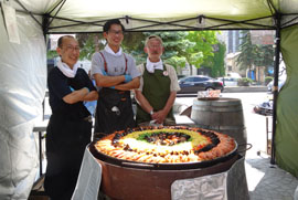 運河プラザ前庭では、石と鉄と洋食屋マンジャーレ、喫茶一番庫が、米10㎏を使った100食分の巨大パエリアを調理して販売。