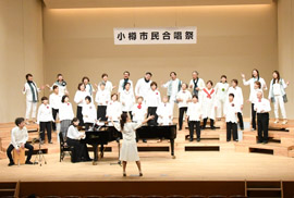 11月5日(日)13:30から、小樽合唱連盟(鈴木功理事長)主催の第137回小樽市民合唱祭が、小樽市民センター(色内2)マリンホールで開かれ、15団体延べ約240名が出演し、日頃の練習の成果を発表。約350名の観客が会場に訪れて合唱を楽しんだ。