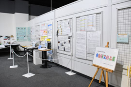 展示会場を、これまでの2階回廊から科学展示室に変更して応募作品77点を展示。応募した子どもたちやその家族・友人らが来場し、作品を鑑賞した。