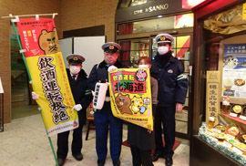 開会式後に、同商店街のニュー三幸小樽本店と酒商たかので、飲酒運転根絶見守り隊が、のぼりやポスター・メモ帳などの啓発品を従業員や店主に手渡し、飲酒の機会が多くなるこの時期の飲酒運転根絶を訴えた。
