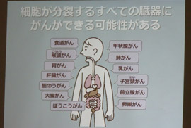 大橋医師は、細胞が分裂するすべての臓器にがんができる可能性があると、しくみについて解説。