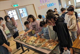 最後にビンゴなどで盛り上がり、記念撮影を行って終了。帰りに匿名希望の支援者から、赤岩工房こんがりや(赤岩1)のパンがプレゼントされた。(写真提供:あかいわ文庫BOOKBOOK)