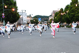 都通り商店街のオーセントホテル前を左折し中央通りを抜け、駅前通りからメインステージまで梯団ごとに踊り進んだ。