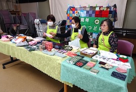 手作りの靴下カバー、ポーチや布バッグなどを格安で販するコーナーもあり、書を楽しむ会の見事な書道作品を展示し、レベルの高さをアピール。