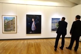 第78回市展には、油彩・日本画・水彩・版画・パステル・工芸・ミクストメディア46名の55点を出品。市展委員の厳選審査で市展賞には山中歌織さんの「変容」、市長賞に増子芳朗さんの「酔客のてすり」が選ばれた。