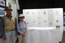 秋晴れで気温も高めとなった10月3日(金)、植物やキノコの細密画を出展した山田公子さんが北広島から訪れ、同公園内で偶然遭遇したまぼろしのキノコの「マクキヌガサダケ」の様子を細密画で出展したことなど、「春・夏・秋と季節毎に見られる植物を展示し、小樽と北広島に共通で見られるものもあるが、独特なものも多く、楽しませてもらっている」と話していた。