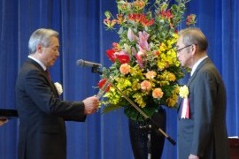 教育功労者・協賛会功労者・物故者特別顕彰の39名を功労者表彰し、代表者5名が、亀山校長から表彰状を受け取った。