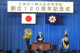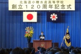 10月4日(土)13:30から、小樽水産高校(若竹町9・亀山喜明学校長)創立120周年記念式典が開催され、在校生367名を含む来賓・OBら約500名が出席し、これまでの歴史を振り返り祝った。