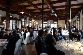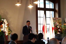 中野会頭はこれまでのあゆみに触れ、「小樽らしさが感じられる会場にと趣向を凝らし、日本遺産に認定された北海道の心臓と呼ばれたまち小樽の当時の面影・歴史を感じていただきたく、1906(明治39)年に建てられた小樽の歴史的建造物で国指定の重要文化財の旧日本郵船株式会社小樽支店を会場に執り行った。
