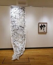 中村秀嶺さんは、高村幸太郎の詩「おそれ」を大きな紙で壁から床に垂らし、池田憲亮さんの燈は、ひょうたんに書き吊るして展示。