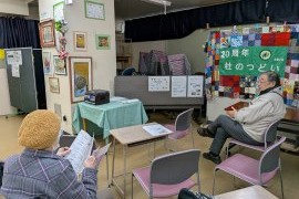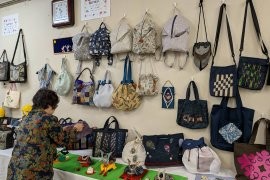 作品展示発表会では、チクチク手ぬいの会、布遊びの会のメンバーが、不要になった着物などの布で、リュックやおしゃれなバックにリメイク。その他パッチワークの会や力作揃いの書を楽しむ会、新聞紙をつかったちぎり絵で四季折々の花などを製作し、心温まる作品が出来上がった。