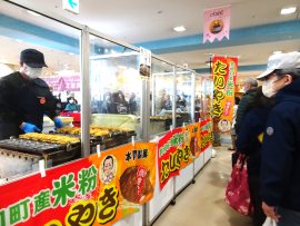 同フェスタならではの出来立てを堪能できる実演販売コーナーは、小樽石蔵バウム、桑田屋のばんじゅう、水昌堂の黒糖わらび餅、ニトリ観光農園のアップルパイ、砂川果樹園の余市生はちみつ、共和より本間製菓の米粉たいやきと三田牧場のアイスクリーム、道の駅あかいがわのおやきのあかりん焼き。