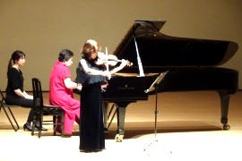 真っ赤な衣装で登場した中川氏のピアノと、市川氏が奏でるヴァイオリンとの掛け合いなどの心躍る演奏に、聴衆は時間を忘れて聴き入った。