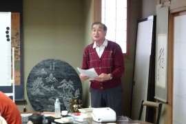 今回は、小樽観光ガイドクラブ所属で北海道小樽潮陵高校PTA会長の下村出さんが講師を務め、「法華経と宮沢賢治」第2回~銀河鉄道の夜を中心に語り、檀家をはじめ、興味を持つ16名が聴講した。