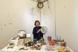 koba-co教室作品展は、ペーパークラフトに魅せられた加賀屋肇惠さんが、子どもたちの写真をファイルする手作りのアルバムを作ることをきっかけに、貼り箱の世界にはまり、2021(令和3)年からは本格的にペーパークラフト活動を始めた。