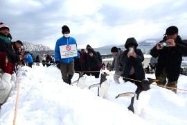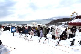 ペンギンの雪中さんぽに歓声!おたる水族館冬期営業開始