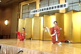 和やかなに懇親会が進められたステージでは、 新年の幕開けに相応しい日本舞踊が披露された。